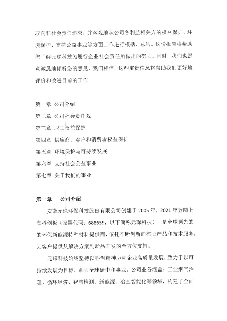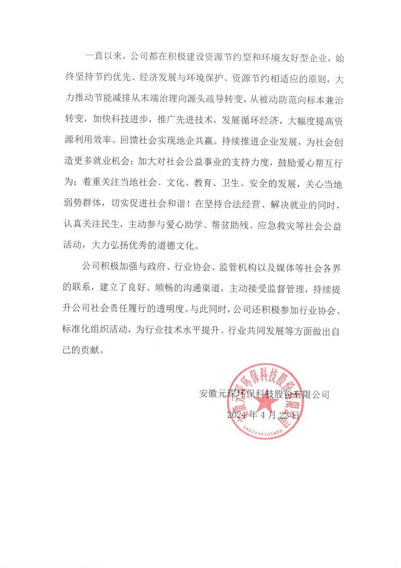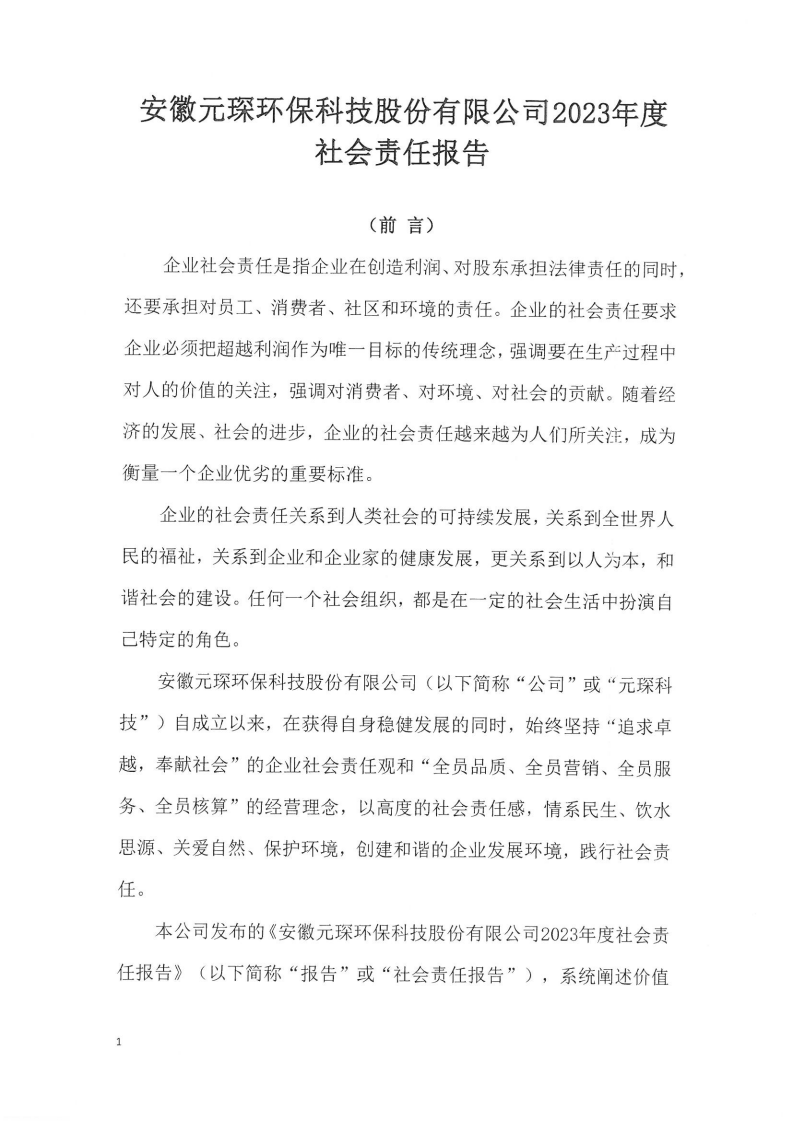 安徽元琛環(huán)??萍脊煞萦邢薰?023年度 社會(huì)責(zé)任報(bào)告