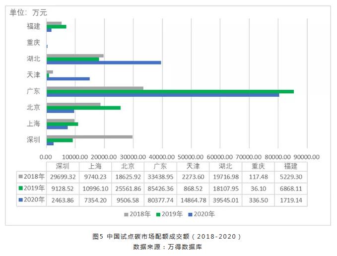 (1)疫情影響下各試點碳市場交易量較去年有所下降,交易額基本持平
