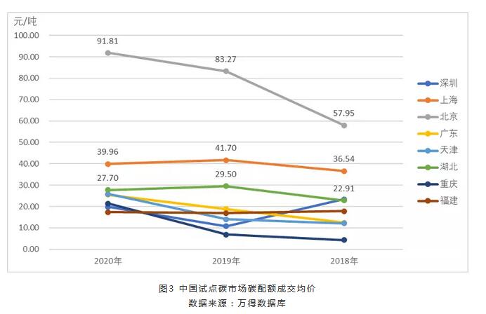 中國試點碳市場從2013年相繼啟動交易以來,根據當地節(jié)能減排實際情況,對碳交易機制進行個性化探索,在交易機制設置、配額分配方法、CCER抵消機制、系統運行設置、對外交流合作等方面積累地方經驗,供全國碳市場參考。其中,廣東碳市場交易活躍,機構投資者表現搶眼,且廣東碳市場針對不同行業(yè)進行不同比例的配額有償分配嘗試,2020年度廣東碳市場電力企業(yè)免費配額比例為95%,鋼鐵、石化、水泥、造紙企業(yè)的免費配額比例為97%,而航空企業(yè)則100%免費分配,探索在同一碳市場下對不同行業(yè)的節(jié)能減排力度進行調整,以更好發(fā)揮碳市場推動行業(yè)低碳轉型目標達成的作用。
