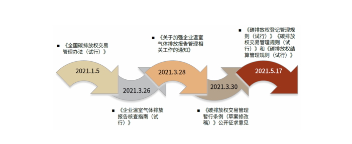 2021年1月,生態(tài)環(huán)境部審議通過《碳排放權(quán)交易管理辦法(試行)》,明確了碳市場的參與主體和監(jiān)管部門等各方的責(zé)任、權(quán)利和義務(wù)。