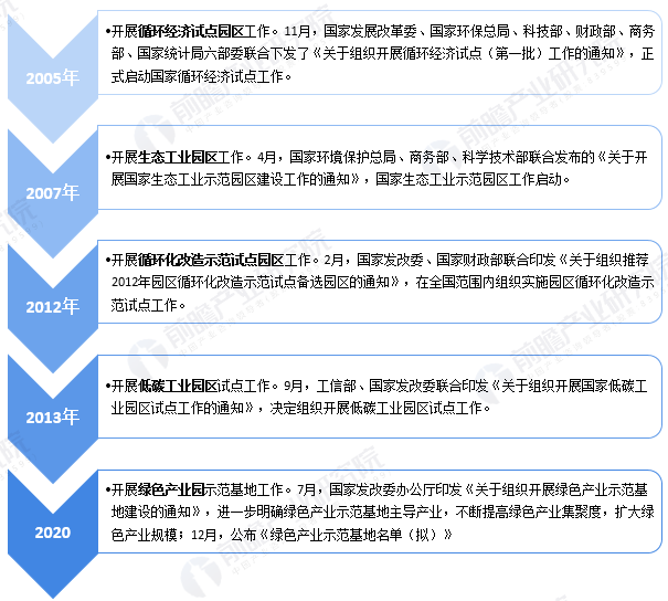 從政策角度來看,早在21世紀初開始,國家發(fā)改委、工信部、環(huán)保部等部委紛紛開展綠色類產(chǎn)業(yè)園區(qū)創(chuàng)建活動,隨后生態(tài)工業(yè)園、循環(huán)化改造園、低碳工業(yè)園等工作相繼展開,具體如下: