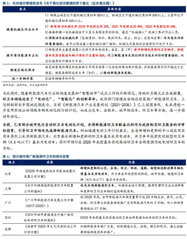 環(huán)衛(wèi)服務:隨著環(huán)衛(wèi)服務市場對“電動化”、“智能化”裝備應用的重視,各地在招投標時將向具有裝備提供能力的環(huán)衛(wèi)服務企業(yè)傾斜,行業(yè)準入門檻提升,龍頭企業(yè)的品牌力、口碑力顯現(xiàn),裝備+服務一體化的龍頭企業(yè)將迎來裝備+服務的雙重催化。