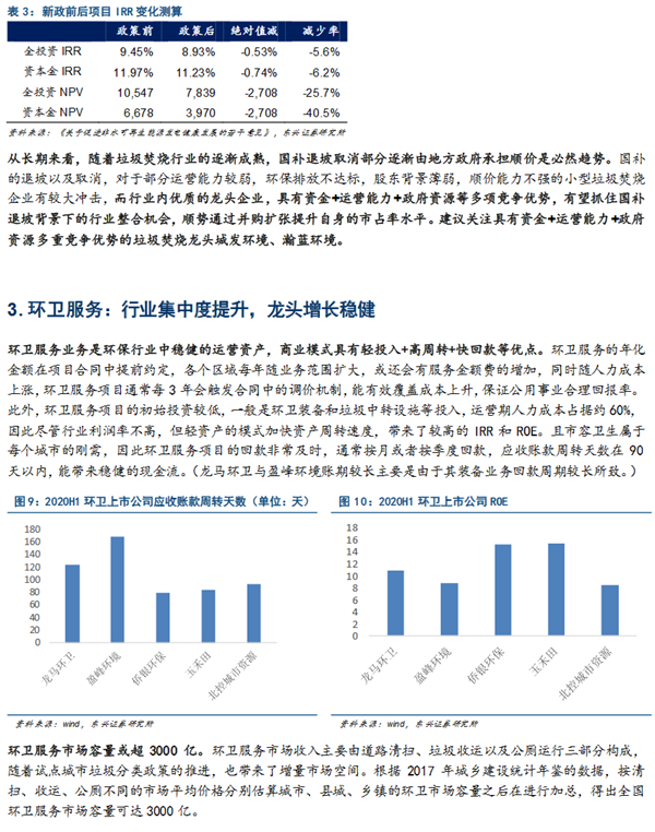 垃圾焚燒:隨著垃圾焚燒行業(yè)的逐漸成熟,國補退坡取消部分逐漸由地方政府承擔順價是必然趨勢。國補的退坡以及取消,對于部分運營能力較弱,環(huán)保排放不達標,股東背景薄弱,順價能力不強的小型垃圾焚燒發(fā)電企業(yè)有較大沖擊,而行業(yè)內(nèi)優(yōu)質(zhì)的龍頭企業(yè),具有資金+運營能力+政府資源等多項競爭優(yōu)勢,有望抓住國補退坡背景下的行業(yè)整合機會,順勢通過并購擴張?zhí)嵘陨淼氖姓悸仕健?/p>